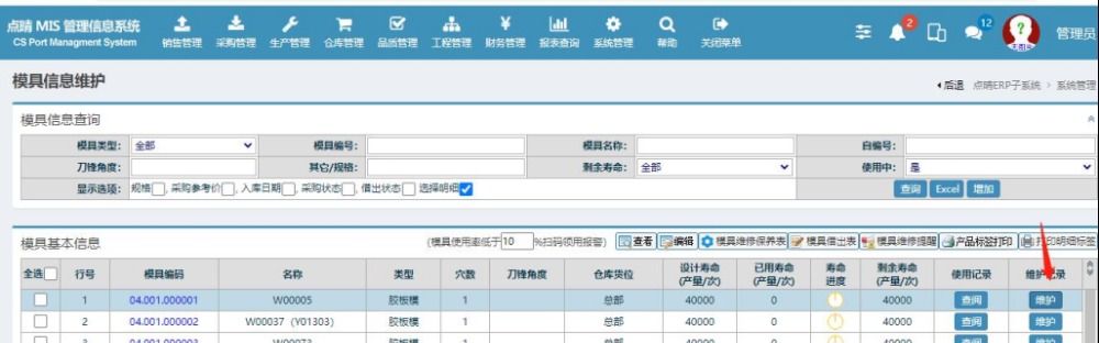 点晴模切ERP-5-模具管理-模具寿命维护与作废