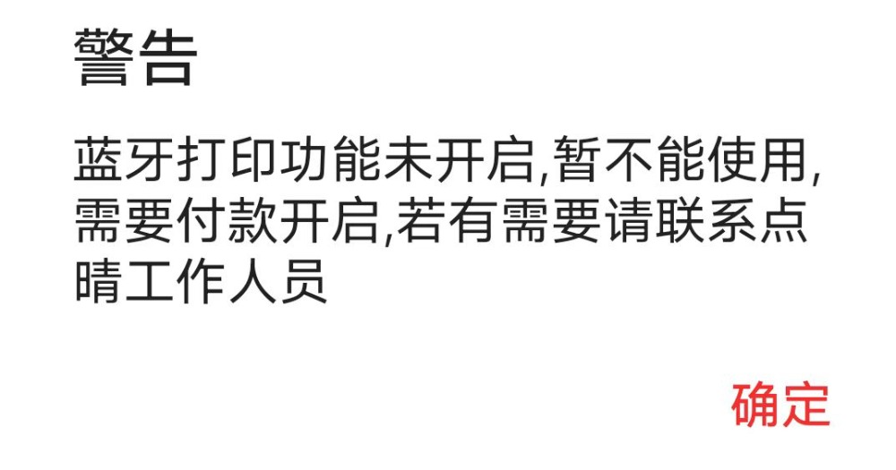 :点晴ERP-弹出提示:蓝牙打印功能未开启,暂不能使用,需要付款开启,若有需要请联系点晴工作人员